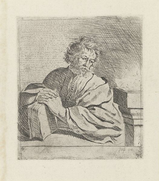 Curator: What a brooding face! It feels like stepping into someone’s melancholic dream. Editor: Indeed. We're looking at "Man met gesloten ogen," or "Man with Closed Eyes," a graphite drawing from 1828 attributed to Anthonie Willem Hendrik Nolthenius de Man. What immediately strikes me is the sheer amount of cross-hatching employed. Curator: It gives the piece so much texture, doesn't it? Almost like the man's worries are etched onto the page themselves. You can almost feel the artist's hand moving across the paper, deciding whether this is work for the light or for the dark, you know? Editor: Precisely. The pressure applied, the type of graphite, even the paper texture itself contributed to the emotional register of the drawing. These weren't mass-produced sketches, but unique handmade artefacts meant for portfolios, or perhaps pedagogical aids. Note, for example, how the clothing seems to be quickly delineated to allow focus upon the facial construction. Curator: True, it does have the feel of a quickly executed portrait. All these light pencil strokes shaping and shadowing a resting face, I imagine it to be the artists’ relative having a quick nap as they quickly sketch this image out of both artistic exercise, and familial love. Editor: I wonder if the eyes-closed portrait speaks to themes popular at that time, ideas of inwardness and subjective feeling... Curator: I hadn't thought of it that way! It definitely puts a different spin on the reading experience to note this piece's proximity to the romantic period. Still, something in his brow betrays that it would take little to wake the figure, despite the peaceful expression in his brow and face, it makes the entire drawing full of tense dynamism. Editor: That tension speaks to how deeply entangled the artist and subject actually were in the making process; not just personally entangled, but through specific types of tools, artistic skills, material qualities, even. It really helps in understanding Romantic-era ideals. Curator: Well, now I see even more in this quick sketchbook study than I did before. All that weight, made visible! Editor: It’s extraordinary how much we can glean from such a seemingly simple work. A fascinating convergence of the personal and material, wouldn’t you say?