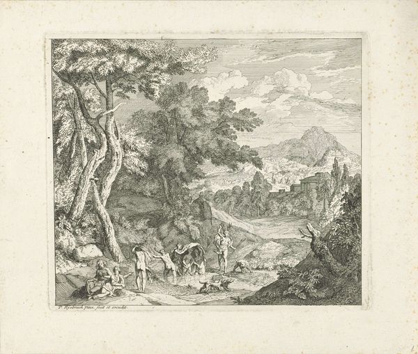 Johann Christian Reinhart etched "Landscape with the Temptation of Christ," presenting a pivotal biblical scene within a dramatic natural setting. Here, the stark contrast between the jagged rocks and the serene foliage embodies the internal struggle between spiritual resolve and worldly temptation. Note how this scene echoes earlier depictions of hermits and saints in desolate landscapes, a motif that recurs throughout art history, symbolizing spiritual purification and testing. This archetype, a lone figure facing trials in nature, resonates with our collective understanding of inner conflict, mirroring similar trials found in the stories of Prometheus or even Odysseus. The landscape itself, with its untamed wilderness, is a mirror of Christ’s own inner desert. This emotional landscape engages viewers on a subconscious level, connecting us to the enduring human drama of temptation and redemption. The motif’s continuous reappearance throughout history underscores its powerful grip on the human psyche, forever evolving yet always echoing the primal struggle between good and evil.