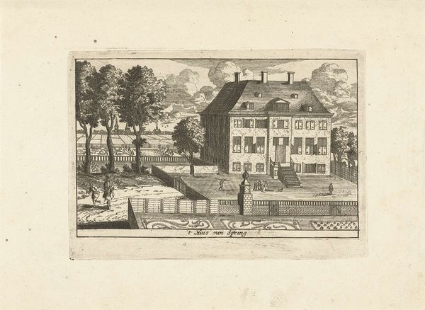 Joseph Mulder created this print of Gezicht op Gunterstein in Breukelen in the 17th or 18th century. This image gives us insight into the Dutch Golden Age, a period marked by economic prosperity and extensive global trade. It was a time of sharp class divisions, where wealth was accumulated through mercantile ventures, often at the expense of colonized populations. The print depicts an idyllic scene of the Gunterstein estate, but it also subtly reflects the power dynamics of the era. Note the figures on horseback and in carriages, symbols of wealth and status, set against the backdrop of the meticulously maintained estate. These elements remind us of the lives of the wealthy landowners who profited from this era's economic system. How did the lives of those who maintained these estates differ from the lives of the landowners? This work invites us to consider whose stories are told and whose are often left out, encouraging a deeper understanding of the complex social fabric of the time. It prompts us to reflect on how landscapes can be both beautiful and imbued with histories of inequality.