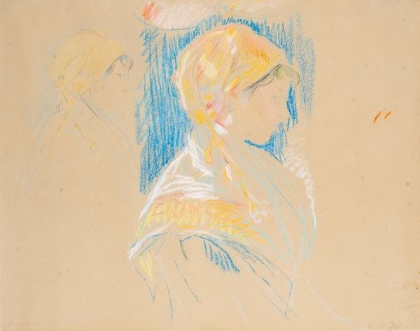 Curator: Here we have Alice Pike Barney’s work, “Fantasy,” rendered in pastel and charcoal. The portrait evokes a palpable sense of intimacy. Editor: Intimacy, yes, and fragility. The texture created by the layering of charcoal and pastel feels delicate, almost ephemeral, as if the image might fade at any moment. One can almost feel the dust of the pigment. Curator: The artist’s expressive handling of line and form are quite remarkable here. Notice how the curves of the subject's neck and shoulder flow seamlessly into the wisps of hair. Semiotically speaking, the averted gaze connotes introspection. Editor: And speaking of those wisps of hair, it makes you wonder what the artist was using and how much of it: Cheap supplies? High-end? Did she struggle to find what she needed, or was she affluent and well-connected? Curator: It presents a fascinating study in tonal contrast as well, doesn't it? Observe the subtle gradations of light and shadow, particularly across the back. They coalesce to create a compelling interplay between luminosity and depth. Editor: That’s a fine point, but I can’t help wondering about the studio conditions—was it drafty, cold? The intimacy you mentioned…did the artist pay the model well or was it transactional, exploitative? These drawings do not emerge from a vacuum; they emerge from real life. Curator: Certainly, we could contextualize the piece socio-historically, but the genius of the drawing resides in its capacity to transcend specific narratives. Editor: But that's where its essence truly lies. The means and circumstances by which art is brought into existence are vital, imbuing the image with greater significance. Curator: I am left admiring how Barney invites contemplation on the very essence of portraiture. Editor: I appreciate the picture more knowing the stories and material circumstances involved in its creation.
