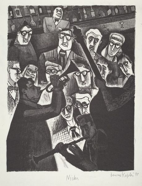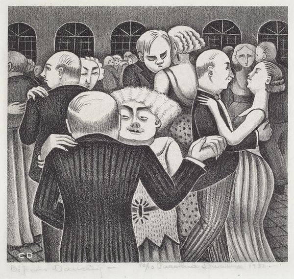 Paula Gerard made this print, Art Conscious, using lithography. The fuzzy textures are really what catch my eye. You know, it makes me think about how every mark counts, how each little scribble adds up to something bigger. I love how Gerard uses these tiny marks to build up the faces and figures. It's like she's not just drawing what she sees, but also showing us how she sees. The marks, some dark, some light, give the print a real sense of depth. Look closely, and you can almost feel the different textures of the furs, hats, and pearls. That one face in the middle, with the hat and glasses, is just killing me! The way Gerard uses these little marks to create that expression, it is just, chef's kiss. It’s like these faces are all crammed together, each with its own story, each with its own way of looking at the world. It reminds me a bit of Max Beckmann's claustrophobic compositions, where everyone's packed in, all struggling for space and attention. It’s like we’re all just trying to find our place in the crowd.