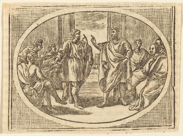 Tobias Stimmer created this woodcut print titled "Brutus kræver sine sønners straf for konsulerne" sometime between 1559 and 1584. Stimmer was working during the Northern Renaissance, a time when artists were increasingly interested in classical antiquity and the humanist philosophies that came with it. This print depicts a scene from Roman history where Consul Brutus orders the execution of his own sons for treason. It’s a brutal moment, isn't it? Here, Stimmer asks us to consider what it means to serve the state versus the ties of family, using the crisp lines of the woodcut to convey the drama. What does it mean to sacrifice one's own flesh and blood for a political ideal? The story of Brutus highlights the conflicts between public duty and private emotion. This work really makes you think about the cost of leadership and the emotional sacrifices that come with it.