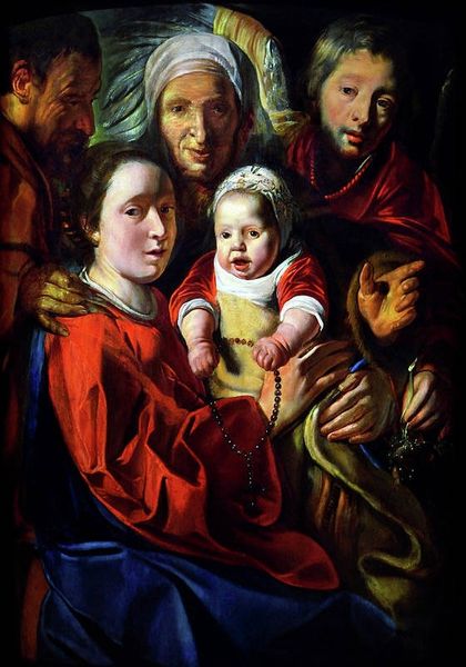 Jacob Jordaens created this "Adoration of the Shepherds" painting where light and dark create a scene of profound intimacy. Notice how the single candle and the sparks of the other light source dramatically illuminate the faces and bodies, rendering the rest of the scene in deep shadow. Jordaens masterfully uses tenebrism, a technique employing strong contrasts between light and dark, to direct our gaze. This isn’t just a play of light; it's a deliberate artistic choice that infuses the scene with emotion. The bright light softens the figures and draws attention to the key subjects within the composition. The close proximity of the figures creates a sense of closeness and intimacy that draws the viewer into the scene. This approach, while seemingly straightforward, invites us to contemplate how light not only reveals but also conceals, prompting us to consider what lies hidden beyond our immediate perception. Light here is a powerful means of conveying complex ideas about knowledge, faith, and the unseen. Jordaens' innovative handling of these elements challenges the traditional viewing experience.