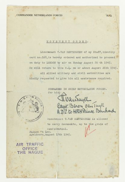 This anonymous piece, made on paper in 1945, is so compelling, right? It's a portrait embedded in a document. I can't help but think about art-making as a process here, a layering of information, a kind of palimpsest of identity and bureaucracy. The texture of the paper, the smudged ink, the official stamps—they all contribute to this feeling of something lived, something real. Look at the way the typed words sit on the page, some darker than others, each letter a small act of creation. The photo itself is a study in contrasts, dark hair against a pale face, lines of worry etched around the eyes. It’s a stark, almost clinical portrait, yet it’s softened by the paper, by the document, becoming something deeply human. It reminds me of some of Christian Boltanski’s work, how he uses found photographs and documents to explore memory and identity. It suggests that art is an ongoing conversation, a way of grappling with the ambiguities of existence.