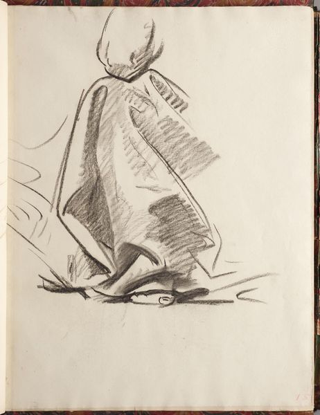 Editor: This is a study by John Singer Sargent called "Elbow, Knee and Foot for the Law." It looks like a charcoal sketch for a larger project. It feels unfinished and somewhat unsettling. What was Sargent trying to capture here? Curator: Sargent designed this sketch for his controversial mural at the Boston Public Library. It’s one of several studies for the larger panel depicting Judaism and Law, which received criticism for its stereotypical representations. Why do you find it unsettling? Editor: The fragmented body and the heavy drapery feel oppressive. Were these feelings common in the representation of Jewish figures at the time? Curator: Absolutely. Think about the historical context; such depictions were often tools used to perpetuate prejudice. Sargent’s work, while celebrated for its technical skill, also reflects the problematic visual rhetoric of its era. Editor: So, this sketch, though unfinished, is a potent reflection of the social biases present in even celebrated art? Curator: Precisely. It's a reminder of how art can both reflect and reinforce societal prejudices.