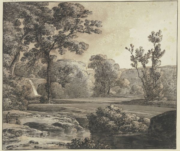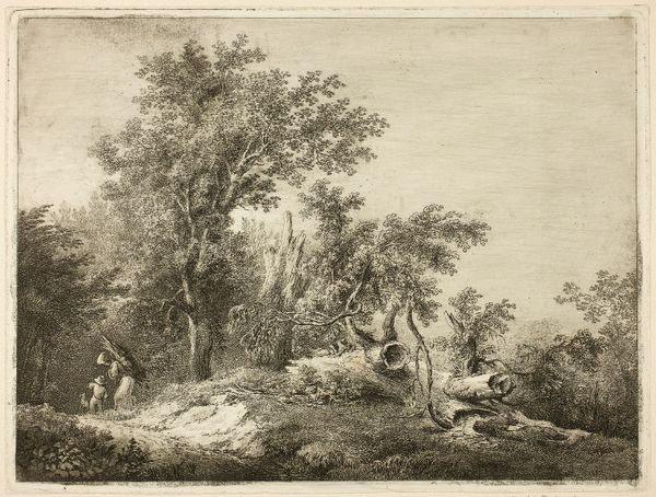 Jan Hulswit created this drawing, now held in the Städel Museum, using pen, brush, and gray ink over pencil. The composition centers on a massive oak tree, its branches arching protectively over a pastoral scene that exudes a sense of tranquility. Hulswit masterfully employs the monochrome palette to direct our gaze. The subtle gradations of gray evoke a range of textures, from the rough bark of the tree to the soft fur of the resting cows. The strategic placement of light and shadow creates depth, inviting the viewer into this serene landscape. The drawing challenges fixed meanings of pastoral art. Instead of an idealized scene, Hulswit presents an intimate and informal view of nature. By focusing on the simple beauty of the everyday, Hulswit invites us to reflect on our relationship with the natural world. Note the delicate lines defining the leaves and branches, a testament to Hulswit's meticulous technique. This precise draftsmanship serves not only an aesthetic purpose but also invites contemplation on the structural beauty inherent in nature itself.