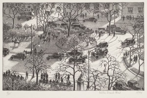 Fiske Boyd made this woodcut, Craigville Church, and look at how he's carved out these graphic marks. There's something so simple and direct about this approach, and it's cool how he commits to that process so wholeheartedly. The whole thing is black and white, right? But then, everything is about how much light comes through by what you remove; the texture is so key here. Look at the mountains in the background and how the white contrasts with the black. How the white changes from a cross hatch to horizontal lines, almost like a topographic map. Then, your eye is pulled down to this railroad track with all these figures doing all sorts of different things. It reminds me a little of some of the prints that Stella did, but with a folk art quality. You know, artmaking really is just an ongoing conversation across time. There isn't one right way to understand it; the beauty of art is that it's always open to new thoughts and feelings.