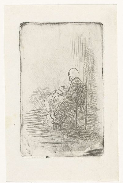 Editor: This intriguing drawing, “Parfois on trouve un vieux flacon qui se souvient, d’ou jaillit toute vive une ame qui revient” by Odilon Redon, from 1890, rendered in pencil, possesses such a surreal quality. It’s this sense of a figure contained, perhaps struggling for release, that really strikes me. What can you tell me about it? Curator: The use of pencil here is quite deliberate, wouldn’t you say? Think about what that suggests regarding the means of production. It’s immediate, relatively inexpensive, and widespread. How does this accessibility influence your understanding of the art itself? Editor: It feels more raw and less refined somehow... less exclusive. So, does the material indicate a certain kind of intent or message then? Curator: Potentially. We could see it as Redon choosing a medium that blurs the lines between high art and more accessible forms. How does that contrast with the symbolic, even esoteric, imagery he uses? Is he democratizing the message, or creating a tension? Editor: So he is perhaps making symbolic subject matter accessible by using commonplace material to make the drawing? And is the reference to a flask or bottle as a container a commentary on commodity? Curator: Exactly! We see these ideas around containment and potential liberation echoed both in the subject and in the materials themselves. The very act of drawing with a simple pencil becomes a key component of the work’s meaning, challenging our expectations of value and artistic creation. What do you think about the depiction of the subject in such an accessible medium? Editor: It gives me a completely different way to see pencil drawing as a medium! I had never considered the materials could add a voice to the artwork. Curator: And that awareness of process, material, and production, ultimately enriches our understanding of the artist's vision.