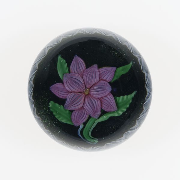This paperweight was made by Cristalleries du Val-Saint-Lambert, but we don’t know when. The company existed in Belgium for nearly two centuries, during which they were celebrated for their glass works. Paperweights like this were part of a Victorian craze. The delicate flower encased within the glass orb is a reminder of nature's beauty, preserved and protected. The weightiness and tactile feel of the object can evoke feelings of stability. But paperweights, like all domestic objects, also tell stories of gender and class. They were often collected and displayed by women of leisure, objects signifying domesticity, taste, and social status in a society that had limited avenues for women's expression. The paperweight, with its controlled, contained beauty, speaks to the complex relationship between nature, culture, and the everyday lives of those who lived with them.