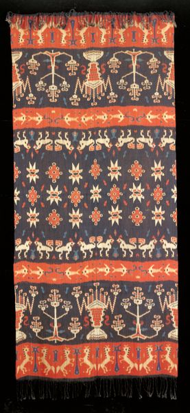 Curator: Ah, here we have an intriguing piece from the Metropolitan Museum's collection: an anonymous "Sheet with abstract and stripe pattern," likely created sometime between 1800 and 1900, employing a combination of drawing and print techniques, suggesting a textile design perhaps. Editor: My first thought? Hypnotic! It’s a little dizzying actually, in a playful way. All those stripes and those… are those supposed to be flowers? They kind of remind me of stylized eyes staring back. Curator: Indeed, the repeating floral or “eye-like” motifs are quite striking. Patterns such as these carry cultural weight, influencing the observer subconsciously with repetitive visual stimuli and establishing collective aesthetic value over long spans of time. It's not simply decoration, is it? But how does this abstract design connect to earlier traditional motifs and its contemporaries? Editor: Not at all. It almost feels subversive. Look at how those muted browns and blues fight against the floral design—it's like a beautiful glitch in the system. Or perhaps an industrial landscape masquerading as a garden, hinting at the shift from nature to mass-produced aesthetics and social experiences. Curator: A rather astute observation, given the period. Remember, textile design was increasingly influenced by technological advances then. And the very act of repetition has deep-rooted symbolic meanings depending on one's culture. Do we have continuity or divergence of form within our collective aesthetic memory? Editor: Hmmm. I find it intriguing because it manages to feel both old and surprisingly modern at the same time. It looks almost digital—like early computer graphics attempting organic forms! It makes you wonder, what did this aesthetic pattern mean to someone? Maybe this "hypnotic" feel wasn’t fully understood or appreciated back then! Curator: Well, whether this artwork evokes organic gardens, proto-digital aesthetics, continuity, divergence, glitch or disruption for the viewer, its capacity to conjure different historical and psychological connections speaks volumes. Editor: Exactly! It's got that special something. I can't help but think this design deserves another look, perhaps repurposed or reinterpreted by today's design provocateurs. Curator: Yes, perhaps its time has come to be re-evaluated.