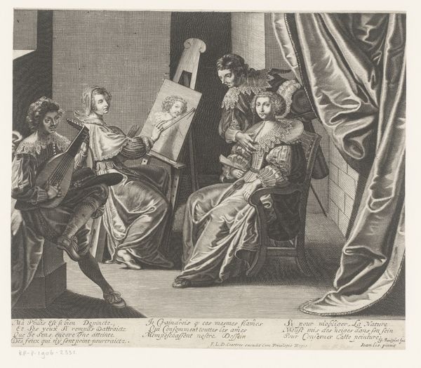 This is an engraving of the Visitation scene by an anonymous artist. It depicts Mary's visit to Elizabeth, and the narrative is drawn from the Gospel of Luke. During the period this was made, the imagery was used to reaffirm societal expectations of women. In the image, gender and class intersect, as we see Mary, often represented as an emblem of purity, meeting her older relative Elizabeth. Elizabeth's joy at Mary’s coming is a pivotal moment in religious history, and the anonymous artist positions it within a broader socio-economic context by including the figure of a woman carrying a basket - a symbol of domestic labor. The artist develops the traditional narrative by showing the spectrum of women’s experiences. The encounter is not just spiritual, but grounded in the everyday realities of women’s lives. The print invites us to consider the varied roles and lived experiences of women in both religious narratives and everyday life.
