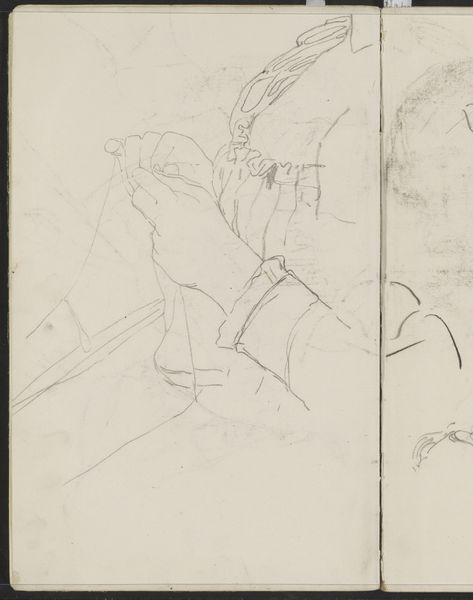 Curator: Looking at this page from Carel Adolph Lion Cachet's sketchbook, created around 1897-1898, the term 'Ornamentontwerpen' comes to mind. It's a flurry of initial ideas rendered in pencil and ink. The work is held in the collection of the Rijksmuseum. What's your first impression of these ornamental designs? Editor: Faint, ethereal even. I see tentative explorations of Art Nouveau motifs. The curving lines and organic forms suggest growth, but there's a definite formality, a structural element preventing total whimsy. Are we looking at furniture? Curator: It appears so. You've rightly identified those Art Nouveau aesthetics – think whiplash curves, the integration of natural forms, which aligns perfectly with the broader artistic movements advocating for uniting fine and applied arts that were going on at the time. There's a drawing of a hat at the top too, very evocative of the turn of the century naval fashion. Editor: The hat indeed shows symbols of power! Speaking of integration, notice the heavy reliance on symmetry here, in contrast to the supposed "organic" flow? Do you feel that it undercuts that idea? What could it mean, considering the era? Curator: The symmetry certainly tempers the organic impression. However, it grounds the designs and possibly caters to an elite market. Cachet worked within a social context valuing handcrafted items with industrial potential. Symmetry aided in reproducibility and appealed to notions of "high art," crucial for navigating the art world. He certainly embraced themes tied to nationhood too. Editor: Absolutely. The ornamentation evokes images, a visual language specific to the social classes using it. Look at how many swirling and shell-like patterns decorate a hat – all these objects, seemingly disparate, work to establish this man as a symbol. The recurring symbols help transmit messages through time! Curator: Cachet, certainly well connected to circles advocating an art embedded in societal life, played on the imagery for cultural memory. Ornament served a vital role. Editor: I see these sketches as more than blueprints; it's a condensed history of aesthetic ideologies wrestling with identity. It speaks volumes to look at the objects through these different angles! Curator: It certainly gives food for thought, how ornament connects people through culture.