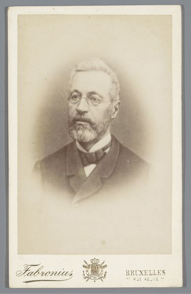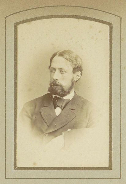 Editor: This is "Portrait of a Man with Insignia on His Jacket," dating from 1894 to 1901, created by Edouard Fabronius, using albumen print photography. There’s a formality to the image, the subject seems very self-aware. What does this image evoke for you? Curator: It speaks to the burgeoning bourgeois class of the late 19th century and the social currency of visual representation. Photography became increasingly accessible, a democratizing force allowing individuals to construct and disseminate their own image, often mirroring aristocratic portraiture. Notice how the framing mimics the conventions of painted portraits of the elite. Editor: The way you contextualize the democratization of photography changes everything. But how do the insignia on his jacket play into that? Curator: Precisely! The medals assert status. The photograph serves not just as a personal memento but as a public declaration, performative act meant for viewing within a particular social framework. Who was he trying to impress, and within what circles? The photograph's survival indicates it had ongoing significance, beyond the merely personal. Do you agree? Editor: Absolutely! I hadn’t considered how performative a photograph could be. It is fascinating how many layers exist here. Curator: Indeed. Examining this through the lens of social history and the politics of image production grants us insight into the societal values of the period. I find the subtle staging fascinating and reflective of how even a static photo can "speak".