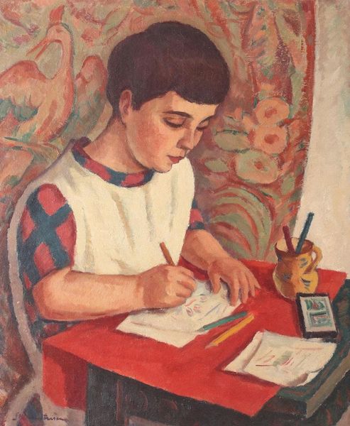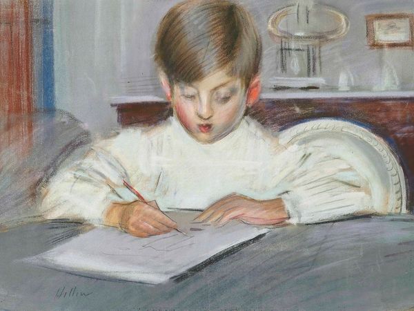 Camille Pissarro painted “Paul Writing” in France using oil on canvas sometime around 1880. As an Impressionist, Pissarro was interested in the effects of light, but here we see something more like a genre painting, depicting a domestic scene of his son writing. The act of writing was becoming increasingly important in French society, as literacy rates rose and the printed word became more accessible. During the Third Republic, which was founded in 1870, there was an increase in public education and the standardization of the French language. One might therefore say that the painting shows how the Pissarro family was integrated into the new Republic’s emphasis on civic education. To understand Pissarro's painting better, we might look at how his work was received by critics at the time, paying attention to the role that impressionism played in shaping national identity. The social and institutional context always shapes the reception and creation of art.