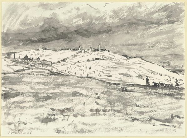 Editor: Here we have Jakob Nussbaum's "Bombardement of Reims," created in 1916 using charcoal on paper. There's an incredible frenetic energy to it, almost chaotic, yet it depicts such a tragic scene. How does this piece resonate within the broader context of art during World War I? Curator: That's a keen observation. The chaotic linework reflects the turmoil of war, certainly, but I think this drawing speaks more specifically to the changing role of art itself. World War I fundamentally challenged the established social order, and with it, artistic conventions. Instead of heroic depictions of war, we see a raw, immediate experience. Expressionism, which Nussbaum employed here, became a vehicle for conveying the psychological impact of the conflict. What do you make of the city's depiction? Editor: It's barely there, a ghostly silhouette in the background. It feels less like a portrait of Reims and more like a portrait of trauma, maybe even a protest. Curator: Precisely! It critiques the glorification of war by revealing its destructive reality. The personal sketchbook quality suggests it wasn’t intended for public display, adding another layer of intimacy and authenticity. What political undertones do you perceive, if any? Editor: Given the time and place, perhaps it's a silent critique of German aggression. But I'm also seeing a more universal anti-war statement. The ruins could be anywhere, anytime. Curator: It is compelling that you interpret the universality of the scene given that, historically, German forces did inflict significant damage on Reims. So its reception may differ culturally, given a local French audience versus other contexts. Ultimately, it offers insight into how war reshaped not just landscapes but also artistic expression. Editor: I didn't fully consider the varying cultural perceptions when considering Nussbaum's work. Thank you, I am glad I have a greater understanding of the impact of war on art.
