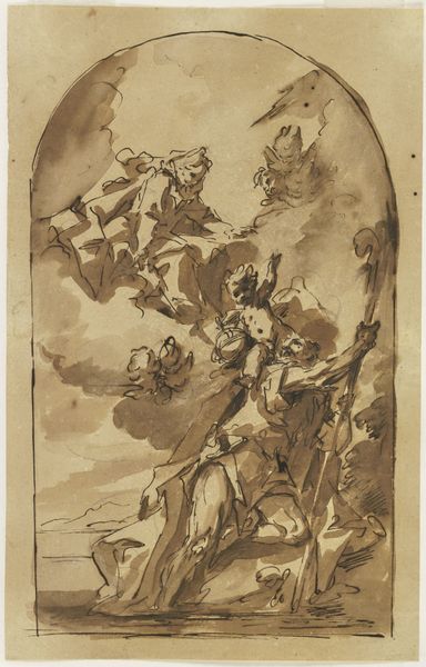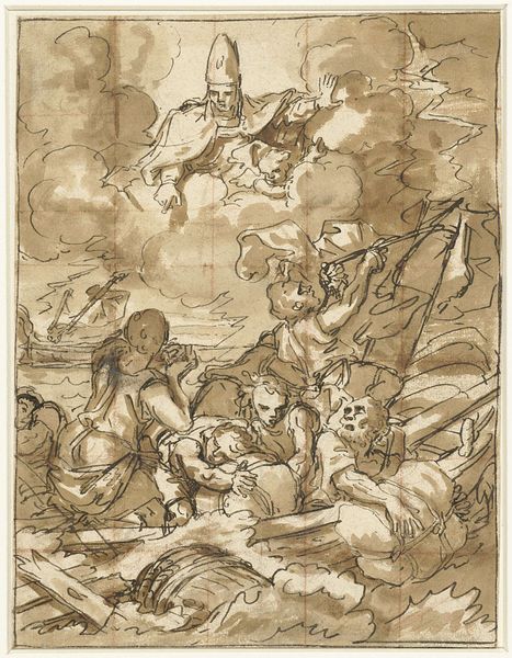 Giuseppe Bezzuoli created "Fall of the Damned" using pen and brown ink with brown wash and white heightening over graphite. Bezzuoli was an Italian painter whose career coincided with a period of great social and political upheaval. The work depicts the fall of the rebellious angels. Consider the historical context in which Bezzuoli painted this piece, a time marked by revolutionary sentiments and struggles for social change. The fallen angels may be interpreted as symbols of rebellion against established authority. Are they tragic figures? Are they martyrs for a cause? The figures are stripped bare, their bodies exposed. This vulnerability may suggest a loss of status, power, or even innocence. Bezzuoli challenges traditional representations, inviting us to consider the complexities of power, morality, and resistance. Think about the emotional weight carried by these fallen figures. How does Bezzuoli's representation invite us to reflect on our own experiences of struggle, resistance, and the consequences of challenging authority?