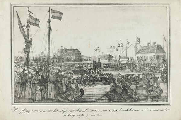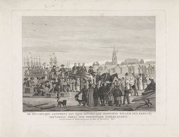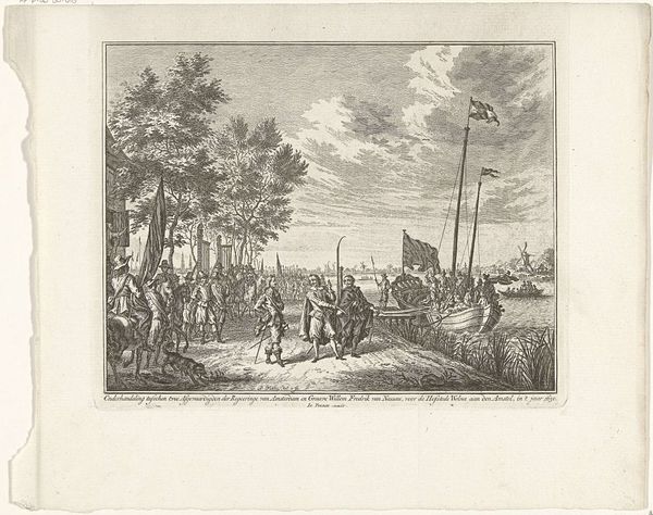 This etching, titled "Arrival of the Prince in Rotterdam," was created in 1785 by an anonymous artist. It depicts Prince William V of Orange’s arrival in Rotterdam. The image offers insight into the power dynamics of the late 18th century. The sheer number of people gathered to witness the Prince’s arrival speaks volumes about the socio-political landscape of the time, and the perceived importance of the House of Orange. Note the uniformity of the crowd, and ask yourself who is included and excluded from this display of civic pride? What does it mean to depict a ruler in this way? The scene evokes both the grandeur of the event and the implicit social hierarchies of the time. This image serves as a reminder of how art can function as a historical record. It also speaks to how power is performed and perceived in society.