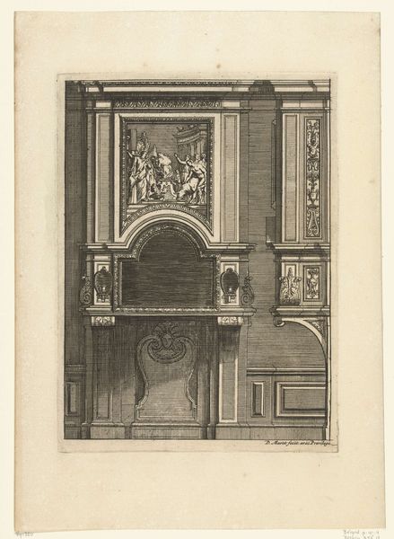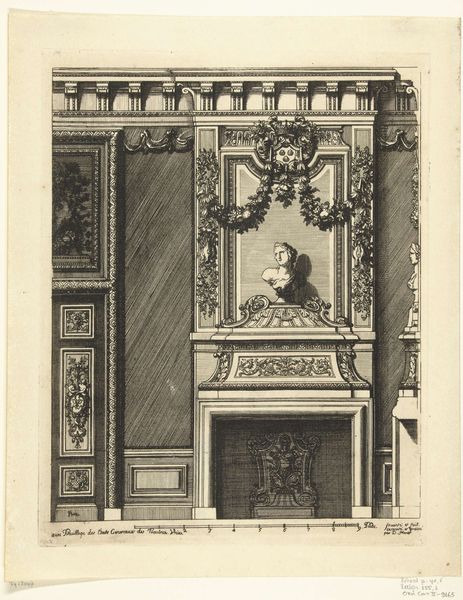 Daniël Marot, a Huguenot designer who fled religious persecution in France, created this print of a chimneypiece, or "Onderboezem," as an aspirational model for domestic interiors. Marot's designs, disseminated through prints like this one, played a pivotal role in shaping the aesthetics of the Dutch Stadtholder-King William III's court. His work helped spread the Louis XIV style throughout Northern Europe. What's striking here is how interior design became a language of power. This print presents an idealized vision of domestic life, one where the home becomes a stage for displaying wealth and taste. Think about how the arrangement of vases and the elaborate ornamentation speak to a desire for control and order. It is almost like a theatrical set. Ultimately, this print invites us to consider the ways in which our living spaces reflect and reinforce societal hierarchies. What does it mean to build your home as a reflection of political power?