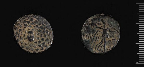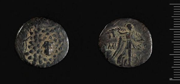 Editor: So this is a Coin of Sinope, made during the reign of Mithradates VI Eupator, currently housed at the Harvard Art Museums. It is small, worn, and carries a lot of history. What does it mean to you? Curator: It’s a testament to labor and power structures. Consider the mining of the metal, the craftsmanship of the die, and the striking of the coin. It represents a complex network of extraction, production, and control. Editor: Control? Curator: Absolutely! Currency is never neutral. It represents economic control and projects the ruler's image. Consider the resources needed to mint these, and what message Mithradates VI wanted to send. How does that change your view? Editor: I see. It is not just an object, but a record of material exploitation and an assertion of authority. Curator: Precisely. It’s a small object embodying vast social and economic forces.