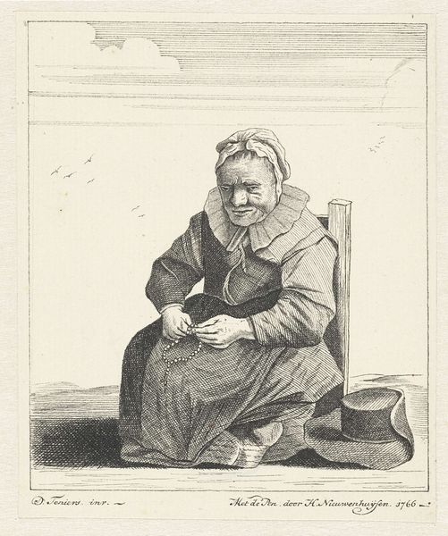 Curator: Ah, here's a fascinating print, "Portret van een zittende geestelijke"—Portrait of a Seated Cleric—believed to have been created sometime between 1625 and 1674. It’s currently housed here at the Rijksmuseum. Editor: The image radiates a subdued stillness, wouldn’t you agree? A pensive solemnity seems to settle over the scene. It’s all sharp lines and heavy blacks that cast an introspective spell. Curator: It's an engraving, which accounts for that striking contrast. You can almost feel the artisan meticulously carving away at the plate, building layer upon layer of meaning, or maybe even emotion. And, while anonymous, one imagines the artist worked in a very academic manner. Editor: Definitely! It almost reads as an exercise in power and knowledge, these very tight, academic portrayals of authority figures often become entangled in webs of social expectation. There's something about that tightly framed, composed presentation. I’m also drawn to the figure's hand—the way he clasps them is quite vulnerable. Curator: It’s curious, isn't it? Given his position, one might anticipate a more overt display of authority. Instead, we see... perhaps, quiet contemplation? A sort of gentle strength that might arise out of intense inner faith. And I'd wager that it definitely ties to the genre-painting tradition. The ordinary in a place of supposed extraordinariness is, well, quietly extraordinary. Editor: Mmm, yes, perhaps. Although genre paintings can also be a form of subtle class critique, even mockery—particularly with clerical subjects in Baroque times, as this engraving technically is. Were there specific controversies surrounding the Church, gender, or social order that may have seeped into such images? Were people pushing back in quiet yet powerful ways through their art? Curator: That’s precisely where the thrill lies, right? In excavating those layers of potential interpretation. Anonymity gives way to possibility, wouldn't you say? Perhaps one must trust more so their own vision of meaning. Editor: It feels necessary, for sure.