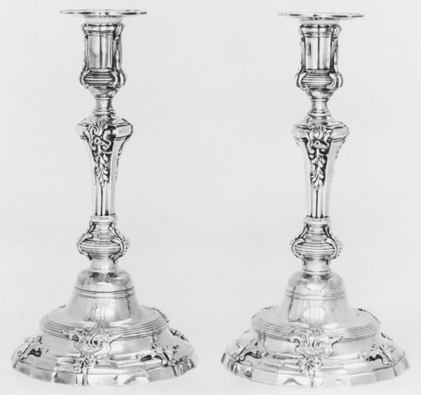 This candlestick, one of a pair, was crafted in pewter by P. J. Joiris. Candlesticks such as these were not merely functional; they were potent symbols of wealth and status in a society deeply structured by class. Pewter, while more accessible than gold or silver, still signified a degree of affluence, marking a separation from the rough wooden implements of the poor. Imagine these candlesticks illuminating a dining table. Who would have sat in the warm glow they cast? What conversations were held? Consider the labor involved in their creation and the hands that polished them, likely those of the lower classes, rendering them invisible in the very display of wealth they enabled. The candlestick serves as a quiet reminder of the material conditions that shape our world, and the stories of those whose labor often goes unnoticed.