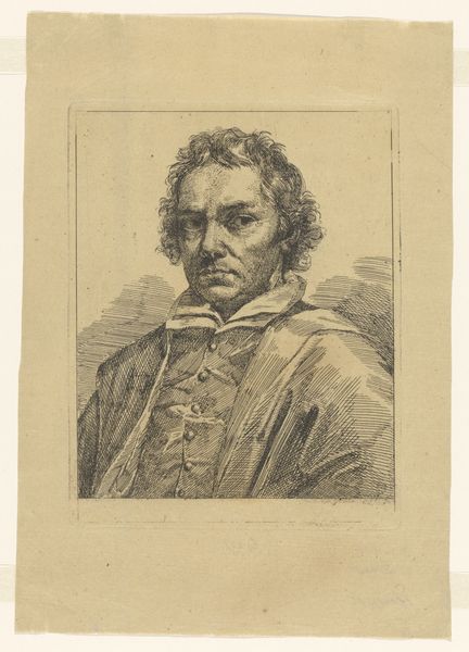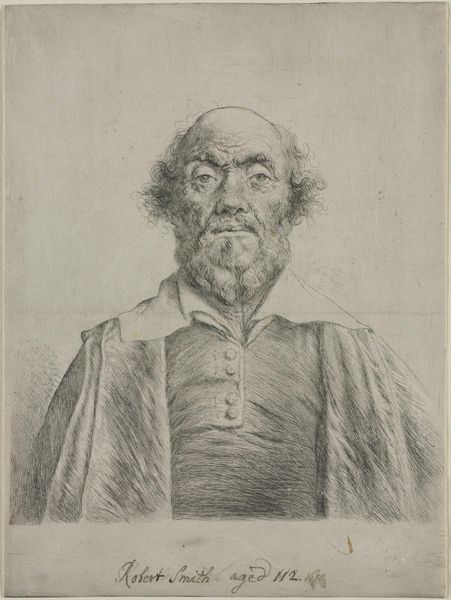 Curator: Before us is "Bust of an Elderly Man," an etching attributed to Jan Lievens, created sometime between 1620 and 1674. Editor: Immediately, I'm struck by the weight of his gaze and the artist's remarkable rendering of age. There’s an intensity that pulls you in, but also a sense of vulnerability. Curator: Lievens, although often overshadowed by his contemporary Rembrandt, was a fascinating figure. This etching provides a glimpse into the artistic milieu of the Dutch Golden Age, particularly the burgeoning interest in portraiture and the human condition. Editor: I’m curious about the choice to depict an older man. What commentary do you think Lievens might have been making, consciously or unconsciously, about aging and societal perceptions of wisdom versus decay? Also the etching has an intimate quality; what kind of audiences would be seeing this work and in what context? Curator: During this period, images of older men were often associated with wisdom and experience. Consider the Council of Elders within the burgeoning Republic of the Dutch, Lievens might have sought to imbue his subject with those virtues, particularly within a culture still wrestling with ideas of societal identity during The Eighty Years' War. These images would circulate among the educated and well-to-do via print, not a large audience, but influential. Editor: It’s interesting to consider the work in light of the Republic, where discussions around meritocracy versus tradition were central. This portrait then can become a commentary of society itself. How do you read the details, like the man's clothes, as signifiers of class or profession? Curator: The simple but well-kept clothing suggests a man of some standing, but not ostentatious wealth; perhaps a scholar or a respected burgher. What I see as really remarkable is Lievens' facility with light and shadow to give presence to the subject. It points us towards some of the artist’s major concerns. Editor: I appreciate the interplay between the personal and the political we've explored here, showcasing how an etching of a solitary, named old man can unveil complex narratives of identity, social hierarchies, and the power of representation during a formative era of Dutch history. Curator: Indeed, viewing art through the lens of history reveals layers of meaning, reminding us that artworks are both products of and participants in the shaping of societal values.