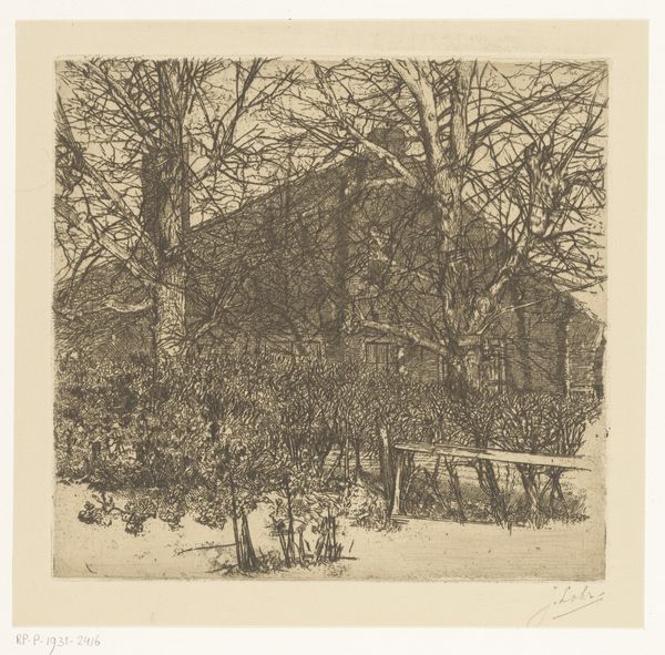 George Elbert Burr made this print called Snow with a metal plate, some ink, and a press, and of course, a plan. The marks are like tiny, deliberate scratches that come together to form this quiet, snowy scene. The texture is smooth overall, but look closely, and you'll see the subtle variations in tone and line that give it depth. See how Burr uses these tiny marks to create the impression of light and shadow on the snow-covered ground? It's almost like he's sculpting with light. That dark patch in the lower right, with its vertical lines, feels a bit like a curtain, or a stage. Burr’s been looking at Japanese prints, I’d bet. Think about those Hiroshige snow scenes, that same kind of quiet and stillness. It’s like Burr is inviting us to step into a world that's both familiar and strange. Art, right? It's a conversation.