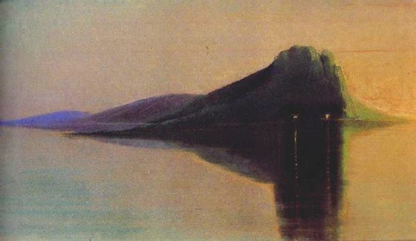 Mikalojus Konstantinas Ciurlionis, who died young, painted "Serenity" using soft, hazy oil paints. I see painting as a process, where the painting is a record of all that I put into it, and here, the artist builds the image with many thin layers of colour, scumbling them together to make a still, almost dreamlike image. The texture in the painting is smooth; brushstrokes are minimal, and colours are blended to produce a soft, atmospheric effect. Look at how the artist represents the mountain, built up from dark, almost black tones, which melt into lighter greens and yellows around the edges. These same colours are reflected in the water. It's like the artist is saying that everything is interconnected, that there is no firm division between things. I'm reminded of the seascapes of Whistler, but whereas his paintings are often about capturing a fleeting moment, Ciurlionis seems more interested in exploring the inner landscape of the mind. For me, "Serenity" is about openness to the ambiguities of art and life.