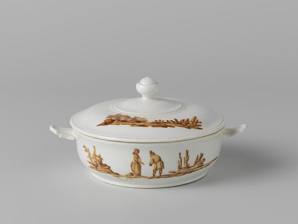 This is a multicolored lid, likely from a sugar bowl, made in Loosdrecht, Netherlands. The purple figures are painted in a seemingly idyllic river landscape. But what are the social conditions that might have shaped this artistic production? Loosdrecht porcelain was produced for a mere 16 years in the late 18th century. Initially supported by the local lord, the factory struggled financially. The relatively limited output of Loosdrecht porcelain makes it highly collectible today, and as such it has become institutionalized in museum collections. But the imagery found on Loosdrecht porcelain can tell us much about the society that produced it. Scenes of leisure were a common subject, but we can learn more by considering the economic structures that made such leisurely pursuits possible. As historians, we must consider the social and institutional context to better understand the meaning of art. Researching the history of the Loosdrecht porcelain factory and the social history of the Netherlands in the late 18th century can help us to consider the role of art in society.