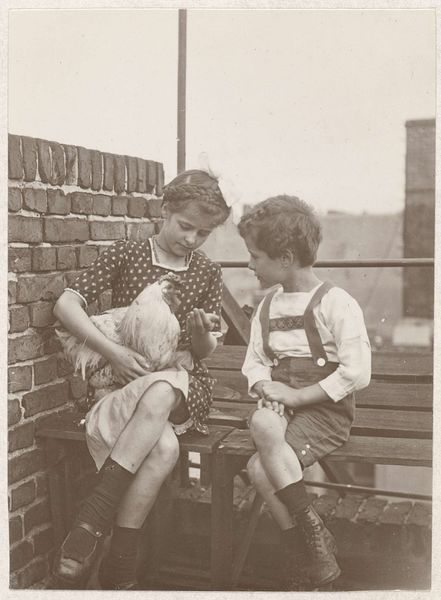 Waldemar Titzenthaler made this photograph, titled "Portret van Marba en Eckart Titzenthaler, kinderen van de fotograaf", using photographic methods rooted in his time. It’s an interesting portrait, a double portrait, and it feels more like a painting than a lot of photographs do. The surface is almost completely smooth, though you can imagine a trace of texture in the way the light falls across the faces and the fabric of their clothes. There’s something so tender and sweet in the tonal range, from dark to light, and the way the artist has captured a certain softness to the children. Look at the way the blanket pools at the bottom of the image. It reminds me of a baroque painting, where the folds in the fabric suggest dynamism and movement in an otherwise still scene. Like the work of Gertrude Käsebier, the image uses the conventions of portrait photography while at the same time hinting at other pictorial possibilities. It asks us to consider the still image as a carrier of time.