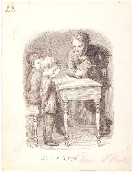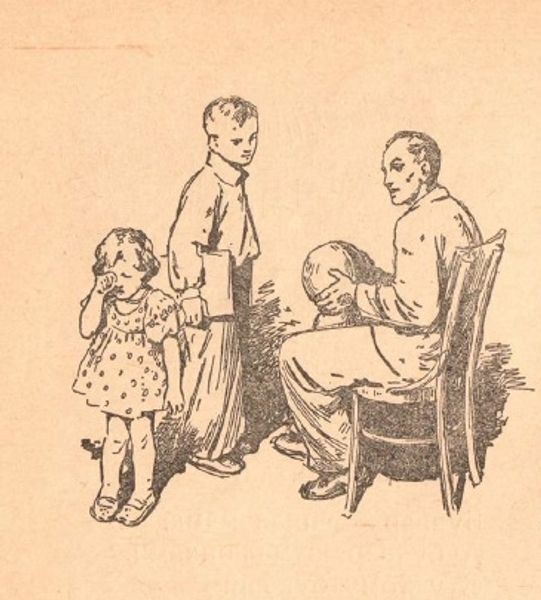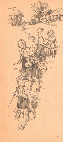 This illustration for Mikhail Stelmakh's book "In the Hedgehog's Windmill" was made by Hryhorii Havrylenko using pen and ink. The artist's lines give form to the figures of the children, their clothes, and the small table as well as the book they are examining. With the skillful deployment of hatching and cross-hatching, the artist creates a range of tones, from the almost pure white of the paper to areas of deep shadow. It is through this technique that the figures take on a life of their own. The artist's hand is highly present in the drawing and reminds us of the labor involved in the book-making process. Before the age of mechanical reproduction, the hand of the draftsman was essential to the spread of stories and education. The handmade quality brings an immediacy to the work, while the quality of labor has imbued the artwork with social and cultural significance. Paying attention to materials, making, and context is essential in understanding the full meaning of an artwork and blurs the line between fine art and craft.
