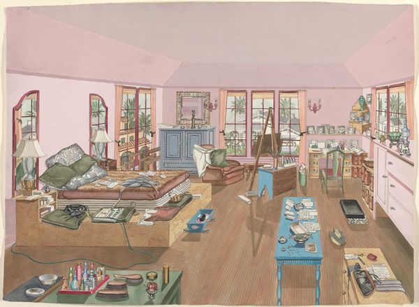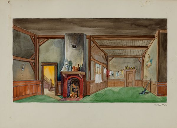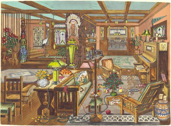 Perkins Harnly made this watercolor of a Hollywood Hotel Lobby in 1902. Note the material abundance on display – sturdy wood columns, brickwork, and plush furniture, all meticulously depicted with a delicate touch. Harnly invites us to consider the processes of production that underpin such material comfort. The architecture’s solid construction, the making of upholstered furniture, and the craftsmanship of decorative elements all speak to skilled labor and the resources required to create this luxurious interior. The subdued colors and the artist’s fine handling of the watercolor medium give a sense of realism, reflecting the social context of early 20th-century America. By focusing on such details, Harnly’s painting challenges traditional distinctions between fine art and craft, inviting us to appreciate the labor, materials, and cultural values embedded in everyday surroundings.