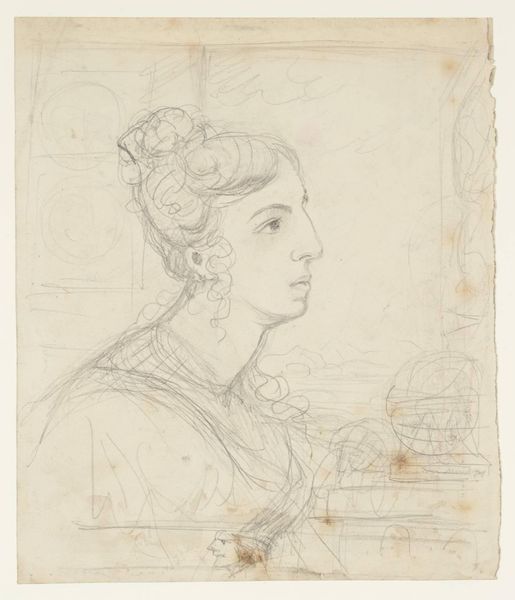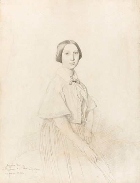 Editor: Here we see Ingres's study for the Portrait of Madame Othenin d'Haussonville, housed at Harvard. It's a delicate pencil sketch, capturing a moment of thoughtful repose. What strikes you about this preparatory drawing? Curator: Consider how Ingres and his contemporaries utilized portraiture to reinforce social hierarchies. How do you think this study contributes to the construction of Madame d'Haussonville's identity and status? Editor: I see the faint grid lines, perhaps a way to transfer the sketch to a larger canvas. Curator: Exactly! And it's a study, a glimpse into the artist's process of refining an image intended for public consumption, framing her within specific cultural expectations. Editor: I hadn't considered it that way. It’s like seeing the scaffolding beneath a grand building. Curator: Precisely. Understanding this helps us decode the broader social functions of portraiture during that period.