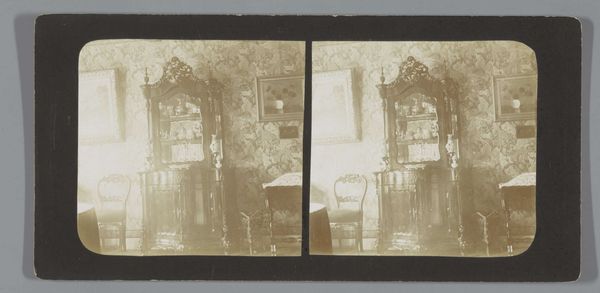 Curator: Adrianus Scheltema-Beduin captured this scene in 1899 with "Vrouw aan een koffietafel in de achterkamer van Singel 256, Amsterdam, Nederland." Editor: The first impression I get is a sense of quiet domesticity—a stillness that feels almost haunting due to the photography's warm sepia tone. Curator: It's a genre painting frozen in time. We have to remember this was a period of immense social change, but such images offered a curated ideal of feminine life. Editor: You're right; the setting amplifies this sensation, all these subtle symbols—the ornate curtains, the china, the position of the woman at her coffee, it’s staged performance within bourgeois life. I'm thinking particularly about how the objects reflect that sense of prosperity and quiet confidence. Curator: Exactly, the table isn’t just a table. It is symbolic of wealth, yet at the same time, it tells a subtle story about gender roles during the Dutch Golden Age and their continuation well into the 19th century. She is defined by the private sphere. Editor: And within that carefully crafted sphere, is there room for agency? Or is she simply a passive object, beautifully framed within her domestic tableau? The weight and arrangement of all these objects... What might those layered symbols have signaled to its original audience? It definitely deserves a closer consideration. Curator: Yes, viewing it through an intersectional lens opens up further avenues. Where does this idealized portrayal meet the reality of women’s experiences at the turn of the century? We can deconstruct the notion of “genre painting” itself. What is included or omitted from this narrative and why? Editor: The light filtering in makes me ponder cycles: of life, of the day, and the cyclical nature of visual tropes within domestic scenes—reminding me that objects and their placement are a language of cultural memory. Curator: Absolutely, this photography offers a valuable starting point for further exploration of social expectations, power dynamics, and even the subtle acts of resistance or self-expression that might have occurred within such spaces. Editor: What an incredible scene! A simple picture transforms to a deeper investigation into domestic codes. Curator: It does indeed, it highlights the layers of meaning embedded within this photograph!