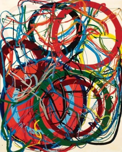 Emily Kame Kngwarreye made this painting titled "Yam Multi Color" with what looks like acrylic, and she just went for it. It’s all about these lines, you know? They seem to dance and weave, creating a playful chaos. The paint's applied so freely, it’s like she’s drawing with the brush, not just painting. It’s not super thick or anything, but you can totally see the movement, the energy in each stroke. Take that reddish line at the bottom, how it curves and overlaps. It’s not trying to be anything but itself, just pure color and gesture. That mark-making is everything, you can feel the artist's hand, how they felt when making it. This reminds me of Cy Twombly, but with an earthier palette. Emily invites us to get lost in the joy of painting, so leave your expectations at the door and just let the colours and forms do their thing.