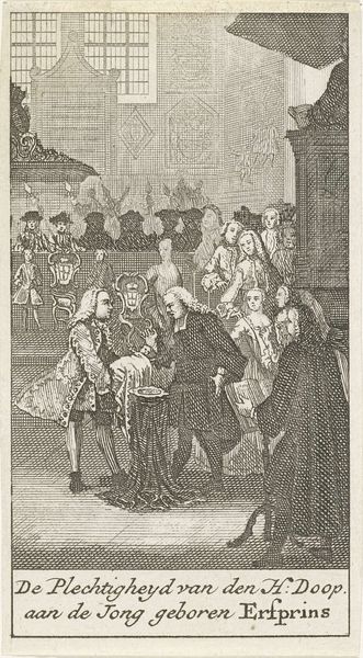 Editor: So, this is Jacob Gole’s "Quakersvergadering," made sometime between 1670 and 1724. It's an engraving, currently held at the Rijksmuseum. There’s something almost theatrical about the scene – a woman standing on a barrel, surrounded by a crowd, and people peering from above. What jumps out at you? Curator: The print immediately makes me consider the material conditions of its production and circulation. Who was commissioning such images? Engravings allowed for the mass dissemination of ideas about groups like the Quakers. The very act of creating and distributing this image implicates it in a broader discourse about religious tolerance, or, more likely, intolerance, during the Dutch Golden Age. Notice how the composition directs our gaze, what kind of labor does the artist render visible, and what does the material of the print afford viewers about the making of such gathering? Editor: That's fascinating! So you're saying the image itself is an act of social commentary facilitated by printmaking technology. Curator: Precisely. Think about the labor involved in creating the copper plate, the ink used, the paper itself. Each step reflects economic and social choices. And consider what is deemed worthy of depiction in mass producible art forms! Why represent this particular group and their gathering practices? It asks us to ponder on the boundaries of social life as displayed, disseminated and, perhaps, consumed. Editor: So, looking at it that way, it's not just a depiction of a Quaker meeting, but also a record of how they were perceived and portrayed through material culture. Curator: Absolutely! And that perception was actively shaped by the choices made in the production and distribution of this print. Examining it materially brings the historical and cultural context to the fore. Editor: I see it in a whole new light now. Thanks! Curator: Indeed, materiality matters! It changes the entire lens and gives you much more background for further digging.