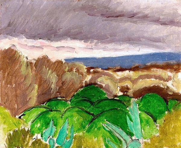 Henri Martin created 'Étude de Causse du Lot' using oil on canvas. At first glance, one is struck by the way Martin uses color and form to evoke a serene yet subtly dynamic landscape. The composition is structured around the contrast between the earth and sky, using light and colour to suggest movement. Notice the application of paint. Short, deliberate strokes capture the essence of the landscape. The brushwork is not uniform but varies in direction and density, creating texture and depth, drawing the eye across the canvas. The colour palette is restrained, dominated by muted earth tones, juxtaposed with blues and grays in the sky. Martin’s color choices reflect Symbolist and Impressionist ideas, where the play of light and color are not merely descriptive but imbued with emotional and symbolic meaning. This technique allows the landscape to become an evocation of mood and atmosphere, suggesting a deeper, perhaps spiritual, connection to the land. The arrangement of color and form work together to transcend a mere representation of place. The painting provides us a moment to reflect on the transient and ever-changing nature of experience.