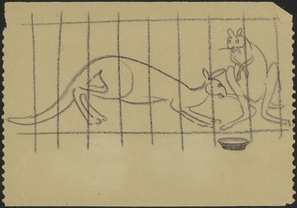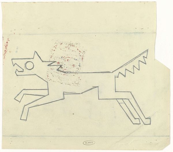 Editor: This is Gerrit Willem Dijsselhof's "Varken en een big op een verhoging," or "Pig and a piglet on an elevation," made sometime between 1904 and 1906, rendered in ink on paper. There's a curious gestural quality to it, a raw energy that makes me wonder, what story is being told through the materiality of the ink itself? Curator: That’s an astute observation. Focusing on the materials, what does the stark simplicity of ink and paper suggest about the artist's intent and the context in which he created this work? Was he perhaps interested in accessibility, affordability, or challenging established artistic norms through this very selection? Editor: Maybe. It feels like a sketch, perhaps a preparatory work. Were such sketches common within the context of Dijsselhof's production, or that of his contemporaries? Were there limitations or affordances from such limited material availability? Curator: It could certainly function as a preparatory sketch; however, we also cannot separate it from the final design itself. The line work conveys volume, with visible pressure variances across each individual penstroke, demonstrating that while quick, Dijsselhof dedicated immense intentionality when making marks on the surface. How do these economic methods complicate distinctions between 'high' art and everyday life? Editor: That makes me rethink its status. If Dijsselhof wasn't aiming for 'high' art, perhaps he wanted to democratize art, by employing materials and processes accessible to more people. What about the labour involved – the swiftness of the marks versus the deliberate act of selecting the material itself? Curator: Precisely! The apparent speed of execution doesn't negate the deliberate, and likely repetitive, nature of mark-making in Dijsselhof’s practice overall. Thinking about the paper substrate, could its relative cheapness point towards art as a disposable commodity, or as a vehicle for ideas accessible across social strata? Editor: Wow, I hadn't considered those implications. I’m starting to see this drawing as much more complex than it initially seemed. Thinking about labor, materials and the intended consumer broadens its historical relevance. Curator: Absolutely. Material choices aren't just about aesthetics, but about power, access, and social meaning. I can feel a strong artistic agency within this humble sketch!
