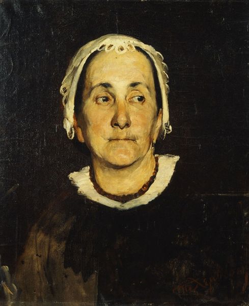 Poul S. Christiansen painted this portrait of his mother, Maren Kirstine Poulsen, with oil on canvas. The white bonnet and bow, symbols of purity and domesticity, frame a face etched with the passage of time. The bow is particularly fascinating; it's a motif that has adorned women across centuries, from the modest necklines of Vermeer’s milkmaids to the decadent court of Versailles. Yet, its meaning shifts. Here, it speaks of a quiet dignity, a life lived within the confines of home and family. Note how the artist contrasts the whiteness of the bow with the somber dark clothing, a stark visual representation of light and shadow, not unlike the chiaroscuro techniques used in Renaissance paintings to convey depth and emotion. This simple portrait evokes the eternal cycle of life and memory, reminding us that even the most humble images can carry profound emotional weight.