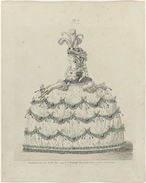 Editor: So, here we have a print titled "Bank met vier zitplaatsen," which I understand means "Bench with four seats". It's from after 1878 and it's credited to an anonymous artist. I’m immediately struck by its elegance – almost ridiculously ornate. It's a watercolor illustration with such a gentle romanticism to it. What’s your take? Curator: Elegance indeed! This isn't just furniture; it's a throne for leisure. I'm fascinated by the implicit social commentary, and I’d describe it as decorative art for the ages. Think about the period – late 19th century – it was an era where industry and artistry collided, where even the mundane, like a bench, aspired to something greater. Doesn’t it feel as though it is presenting a world we might only imagine through books and drawings? How do you read its presentation? Editor: It seems aspirational, showing a piece of furniture more beautiful than practical, definitely designed for a particular clientele. Almost staged. What about the figure on the top of it? I missed that at first glance. Curator: Ah, good eye! That tiny sculpture changes everything. A classical figure atop the bench? Is it heroism on display, or a touch of self-aggrandizement? Remember, decorative arts were intensely symbolic. Someone carefully considered that placement, that choice of figure. It says “Look! Grandeur isn't dead! It’s perched right here, ready for a comfy sit.” Perhaps a slight overreach on their part... but the era kind of allows it. Don’t you think? Editor: Definitely! Now I see a sort of humor in that excess. I came in thinking “pretty,” and I’m leaving thinking “statement piece." Thank you for changing my perspective on it! Curator: The pleasure is all mine. It always makes me smile a little bit to imagine what this would like in someone’s parlor, and that figure proudly declaring a reign of opulence, comfort and just a hint of over-the-top pretension. It definitely provokes deeper questions around how class and identity shape our aesthetic choices!