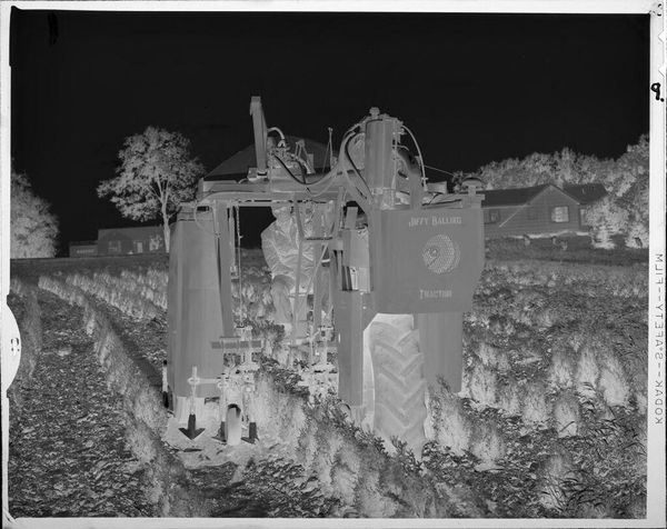 Curator: This gelatin silver print, approximately 4x5 inches, by Lucian and Mary Brown, captures a backyard luau. The photograph, part of the Harvard Art Museums collection, is titled "Untitled (people eating from a buffet table at backyard Luau)". Editor: The inverted tones create such an odd, dreamlike quality. The high contrast almost abstracts the scene, emphasizing the geometric lines of the tables against the organic forms of the trees. Curator: Indeed. Note how the buffet table itself becomes a stage, a site where labor and leisure intersect. The abundance of food, a marker of privilege, stands in stark contrast to the labor required for such an event. Editor: And that inversion adds an unsettling quality to the otherwise festive scene. It disrupts the expected visual harmony, forcing us to consider the underlying structure of the image. Curator: This inverted effect makes us contemplate how the means of production and consumption can be subverted. Editor: Ultimately, the photograph’s beauty lies in its ability to highlight formal relationships.