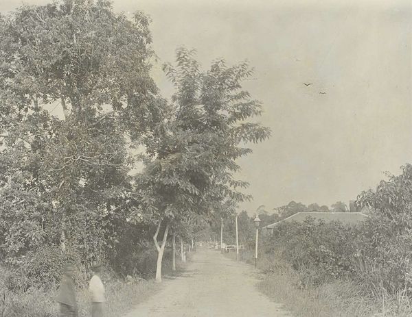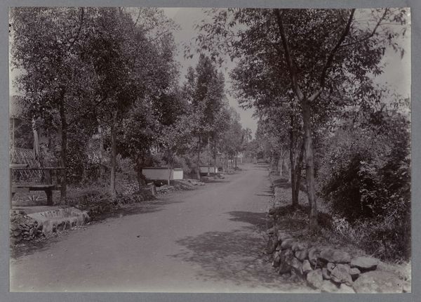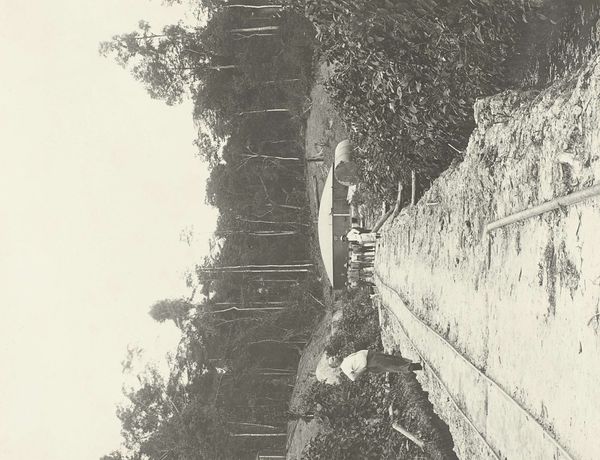 This photograph titled 'Boorpijpen' shows a scene dominated by stacks of drilling pipes, likely taken during the late 19th or early 20th century. The anonymous photographer captures not just industrial elements, but also offers a glimpse into the social structures of its time. The image creates meaning through a stark visual contrast: the ordered stacks of pipes and industrial equipment are juxtaposed with the natural, almost unruly backdrop of trees. This contrast speaks volumes about the encroachment of industrialization, and perhaps colonialism, on previously untouched landscapes. Given the presence of what appears to be Southeast Asian workers, it may be located in a Dutch colony. To fully understand this image, one could research the history of resource extraction in the Dutch East Indies. These records can reveal more about the labor practices depicted here, and the economic motivations behind them. This photograph isn't just an industrial record; it's a document ripe with implications about labor, colonialism, and environmental transformation.