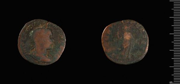 Editor: Here we have a coin of Cremna under Septimius Severus housed at the Harvard Art Museums. The weight is about 19 grams. Given its age, the surface is quite worn. What strikes you about the formal qualities of this piece? Curator: The coin presents itself as a compelling study in relief. Consider how the incuse portrait on the obverse dictates the viewer’s interaction. Notice also the marked degradation; the patinated surface reveals not only age but also the material’s inherent vulnerability. Editor: So, its imperfections contribute to its aesthetic value? Curator: Precisely. The wear serves as a visual index of its journey through time. The coin’s circular form, now slightly irregular, further underscores this tension between original design and entropic decay. Editor: Fascinating. It’s about seeing the composition, not just the subject. Curator: Indeed.