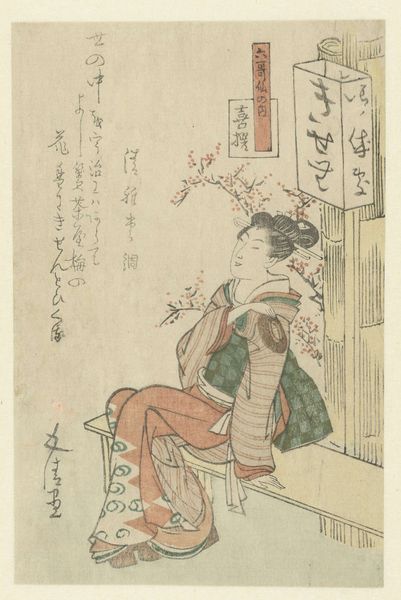Suzuki Harunobu created this woodblock print in 1764, depicting the actor Segawa Kikunojo II. The actor embodies Umegae, a courtesan, holding a lacquered tray, standing serenely. Overhead, we see a wind chime, a symbol deeply woven into the cultural fabric of Japan, representing the transient nature of life and the delicate balance of existence. The wind chime appears across cultures, from ancient Rome, where tintinnabula protected from evil spirits, to East Asia, where they’re thought to bring good fortune. As a symbol of impermanence, the wind chime stirs subconscious awareness of mortality and change, reflecting the fleeting beauty of the cherry blossoms. The actor is captured mid-performance and this is preserved in this single moment, engaging us in a dialogue across time. The chime, in its gentle resonance, echoes the actor's emotional performance, creating a powerful connection.