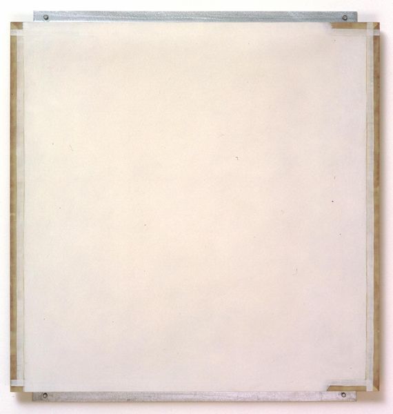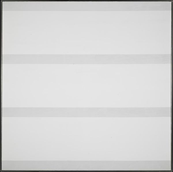 Curator: Agnes Martin's "Faraway Love," part of the Tate collection, presents us with a large canvas of delicate, horizontal lines. Editor: It feels incredibly subtle, almost like a whisper. The scale is impressive, yet the impact is so gentle. Curator: Martin's process is key here. These aren't just lines; they're built up with graphite and gesso. It’s about the labor and the careful construction of something seemingly simple. The grid, for Martin, was about humility. Editor: That humility is striking, especially considering the art world's machismo. Did the institutions showing her work at the time recognize this quiet power? Curator: I think they were captivated by it. Martin carved out a space for a different kind of art, one that foregrounded materiality. Editor: It makes you appreciate the hand, the time, the conscious slowing down. Curator: Exactly. And how that challenges notions of production and value. Editor: Looking at it now, I see something more than just lines. It's a feeling, a presence. Curator: It invites contemplation, it is a reminder that the political can also be quiet.