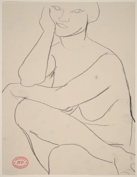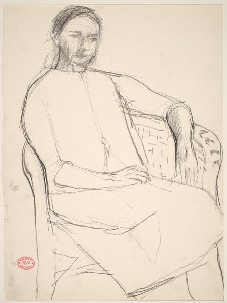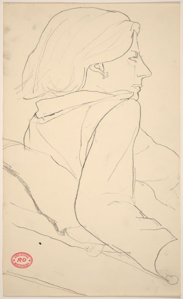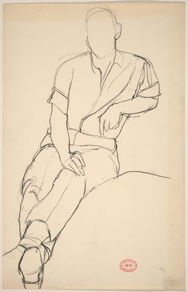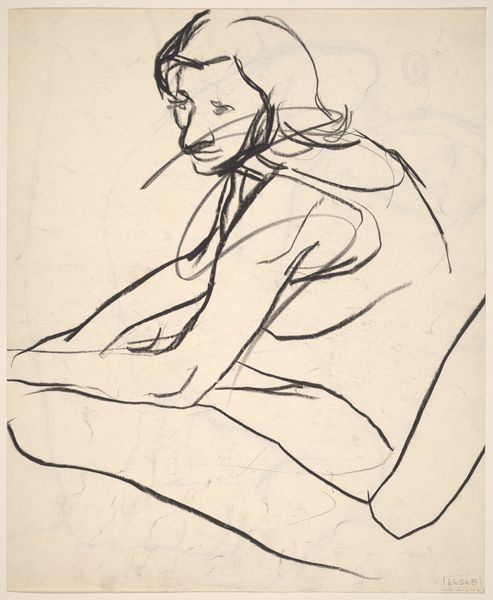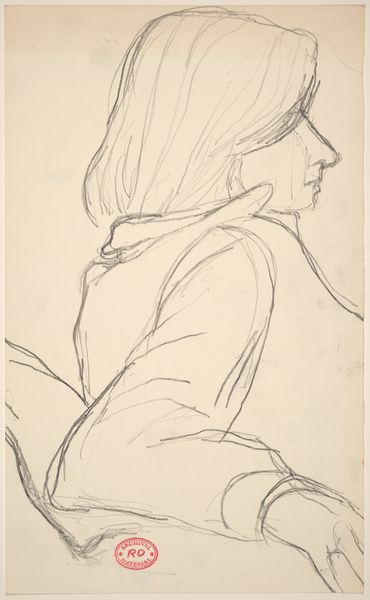 Curator: This drawing is titled "Untitled [seated female nude: side view]" by Richard Diebenkorn, created sometime between 1955 and 1967. Editor: It's incredibly spare, isn't it? So few lines, but it conveys the weight and form so clearly. Almost melancholic. Curator: Precisely. The starkness points to the labor of production; the unadorned pencil on paper emphasizes process over traditional artistic ornamentation, focusing on the materiality of the medium itself. It also raises questions about Diebenkorn’s process—what led to the selection of these specific, almost hesitant, lines? Editor: The composition is interesting. See how the strongest lines define the back and the angle of the head? There’s a clear structural integrity despite the economy of means. It really draws your eye, encouraging you to complete the form with your imagination. Curator: I find the social context quite relevant too. During the mid-20th century, Abstract Expressionism provided a unique lens for the female form. By choosing this specific rendering, it hints at the societal position of women in relation to their male counterparts during this period. This work resists simple objectification, almost demanding to be seen as a study. Editor: Agreed, there is certainly restraint. Yet, the angle of the head and slump of the shoulders give us some kind of emotional access. Even though minimal, the details hint at internal emotional states. Curator: It highlights the very tension between production, perception, and social realities. What is being made, who is it made for, and how is it received, becomes pivotal when discussing Diebenkorn's drawing. Editor: Seeing how efficiently Diebenkorn distilled form and feeling makes me appreciate how effective less can be. It stays with you precisely because of its incompleteness. Curator: And for me, it is a great reminder of the material and societal influences shaping not only what is seen but also what isn’t shown, urging us to acknowledge the intricate complexities of artistic representation.