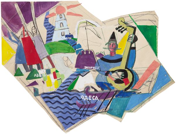 Curator: Malcolm Morley's large-scale painting, "Mariner," presents a chaotic, almost dreamlike seascape. The artist, born in 1931, often explored themes of travel and transportation. Editor: It's visually overwhelming, in the best way! A jumble of boats, planes, and even a hot air balloon, all colliding on a stormy sea. There's a real sense of disorientation. Curator: Disorientation is key. Morley challenges traditional landscape painting, disrupting spatial relationships and historical contexts. Notice the juxtaposition of ancient sailing vessels and modern aircraft. Editor: It's like a visual encyclopedia of maritime and aeronautical symbols, layered with a sense of impending disaster. Are the symbols of progress doomed to collide with history? Curator: Perhaps. Morley often critiqued the romanticization of travel, exposing its darker aspects through fragmented imagery and unsettling compositions. Editor: It leaves you pondering the weight of history, the ambition of progress, and the fragility of our relationship with the elements. Curator: A powerful statement on the complexities of human ambition and its impact. Editor: Indeed, a voyage through symbols that lingers long after you’ve left it.