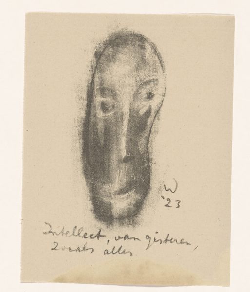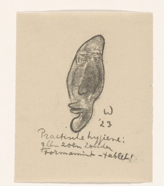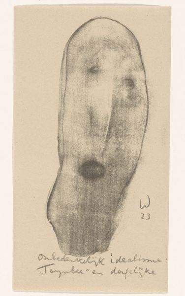 Erich Wichmann made this small drawing, titled 'The Rotten Egg of Democracy,' in 1923. It's graphite on paper, and the marks are tentative, searching—like the artist is feeling around for the form. The egg, this political statement, is not a hard, defined shape, but something soft and yielding. Look at how the graphite is smudged and rubbed into the paper, creating subtle tonal variations. The lack of hard edges gives the image a ghostly quality. It’s as if the idea of democracy itself is decomposing, fragile, and perhaps even a little bit repulsive. I'm reminded of George Grosz, with that same cynical edge, but Wichmann's drawing is quieter, more introspective. Both were wrestling with the turbulent politics of their time, but here, the critique is internalized, etched onto the face of a decaying egg. Art isn't about answers; it's about asking the hard questions, even if they leave a bad taste in your mouth.
