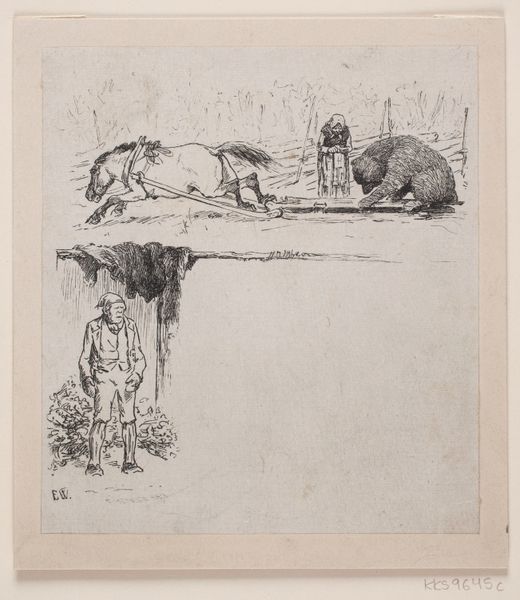 Editor: So this is "De to venner," or "The Two Friends," a lithograph from 1845 by Adolph Kittendorff, currently housed at the SMK. It depicts two dogs nestled together. It's really charming, quite realistic for its time... almost folksy. What stands out to you in this piece? Curator: Immediately, I'm drawn to the process of lithography itself. Consider the labor involved in creating the matrix, grinding the stone, preparing the inks… Each step reflects a material reality. This print, ostensibly a genre scene, reveals more about the social and economic context of art production in 19th century Denmark. Do you see how the seeming simplicity actually masks a complex relationship between the artist, the materials, and the intended consumer? Editor: That's interesting! I hadn’t really considered the physical process so much. I was thinking more about the sentimentality of the image. Curator: Sentimentality, yes, but within a market! Prints like these made art more accessible. This seemingly humble image connects directly to broader trends of industrialization and the commodification of art. Consider the paper it's printed on, where it came from. Was it locally sourced or imported? Every material tells a story of trade and labor. Editor: So you're saying the focus isn't just on the dogs’ friendship, but on the making of the print and how it circulated? Curator: Precisely. The "friendship" is almost secondary to the materiality of the work and its existence as a purchasable object. How many impressions were made? Who was the target audience? These questions reveal the artwork’s function within a burgeoning market economy. Editor: I never thought about art in quite that way before – the tangible making of the piece beyond its message. Curator: It’s a perspective that grounds art history in real-world conditions. We begin to see art not just as an expression of individual genius, but as a product of labor and materials within a specific social and economic landscape.