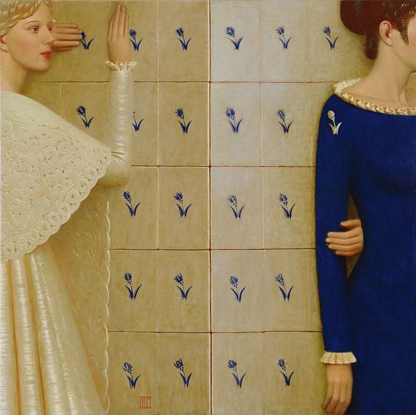 Andrey Remnev’s painting "The Unplaiting of the Hair" draws us into a world where the earthly meets the ethereal, rendered in a style that marries Byzantine iconography with Renaissance precision. The painting's formal structure is built upon a stark contrast of color and texture. The woman, adorned in a shimmering gold fabric, stands in the foreground, while behind her, the figures of angels fade into a softer, more muted palette. The unplaiting of her hair—a symbolic act—creates a powerful vertical line that bisects the composition, drawing our eyes from the mundane to the divine. The geometric precision with which Remnev arranges these elements suggests a deeper, structuralist reading. The act of unplaiting might be seen as a semiotic marker—a signifier of change, loss, or perhaps the shedding of innocence. This transformation is set against the backdrop of unchanging angelic figures, creating a tension between the temporal and the eternal. In its visual language and symbolic depth, "The Unplaiting of the Hair" offers not just an aesthetic experience, but an invitation to ponder the liminal spaces where human and divine realms intersect.
